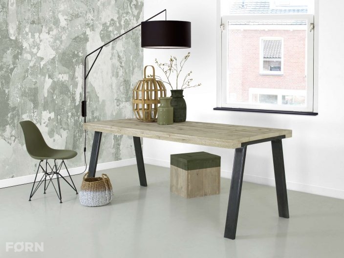 Schöne kombination zwischen Kaltem Stahl und Warmen Holz. Industriedesign Tisch Andrea ist eine Schönheit unter den Industriedesign Tischen. Sie hat schräge, schlanke beine aus Schwarzem Stahl. Wir verarbeiten die basismaterialen Stahl und Holz in unser eigenen Tischlerei. Die Tischplatte ist hergestellt aus Zwei lagen Fichtenholz, Sie kennen es wahrscheinlich auch als Bauholz. Der Industriedesign Tische mit einem Warmen Holzblatt und Stahlen Beinen stellen wir in unserer eigen Fabriek her. Die Lieferzeiten sind dadurch auch völlig realistisch. Wir sind nicht abhängig von Lieferanten. Maßarbeit geht bei uns genau so schnell.