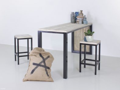 Bauholz Tisch mit Untergestell aus Gerüstrohren Maurice